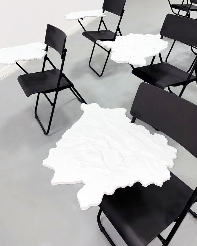 Und da wäre ja natürlich noch das Buch „Tausend Plateaus: Kapitalismus und Schizophrenie“ von Gilles Deleuze und Félix Guattari. Das ist ein Teil klassischer Kunsttheorie bzw. Philosophie, das uns allen irgendwie geläufig ist und dessen Erstveröffentlichung nun 45 Jahre zurückliegt. Deleuze und Guattari hatten damals natürlich noch keinen Schimmer von Instagram und Co. Die Idee, jedes Kapitel als autonomes Plateau zu errichten und diese dann als Rhizom zu verbinden, wurde aber zu einer Grundlage für das Verständnis einer medial geprägten Gesellschaft. Bei uns verdient der Gedanke auf jeden Fall eine Revision und soll uns hier auch als Inspiration dienen. Das weitverzweigte Rhizom wird in unserer Ausstellung eine Nähe erfahren. Die Inseln bilden eine Archipel, der unter Wasser verbunden ist. Wasserstand und Tektonik können diese Inseln zueinander führen, um sie in einem neuen Kontinent aufgehen zu lassen. Dieses utopische Bild trifft auf eine Realität, in der Landschaften wieder zunehmend territorial gelesen werden.