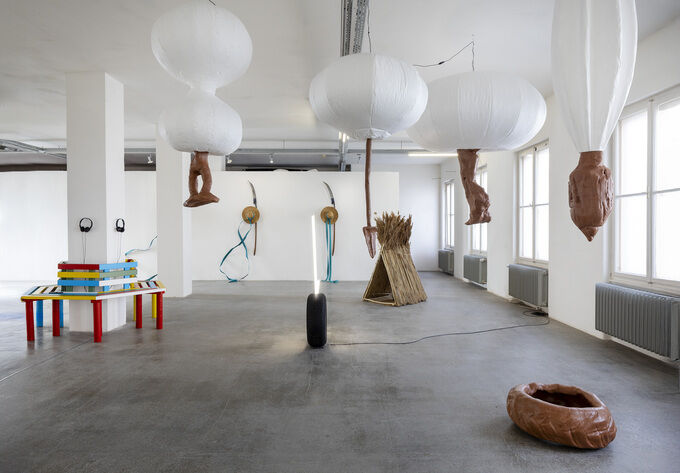 Bei Softshell Archipel sieht man Arbeiten, die sich sowohl mit formalen Fragen als auch mit gesellschaftlichen Beziehungsstrukturen jenseits der Kunst auseinandersetzen. Ausgangspunkt sind die Positionen der drei Protagonist:innen am Eingang dieses Textes, die jeweils weitere Künstler*innen eingeladen haben, mit denen sie sich verbunden fühlen. Die Arbeiten treten nicht nur innerhalb dieser Gruppen in Resonanz, sondern korrespondieren auch mit anderen Positionen der Ausstellung.