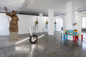 Die Anekdote über die zufällige Übereinstimmung in der Praxis dreier befreundeter Künstler:innen und ihre Kommunikation über Social Media macht deren Arbeiten wie selbstverständlich zum Ausgangspunkt der Ausstellung. Sie erzählt eine gemeinsame Geschichte, die als Grundlage für eine futuristische Landschaft gelesen werden kann. Darüber hinaus eröffnet sie ein Modell gelebter Zusammenarbeit und produktiver Beziehungen zwischen Künstler:innen, die sich oft zunehmend isoliert erleben. Vorausgesetzt, dass Ähnlichkeiten oder Nachbarschaften nicht als Bedrohung der eigenen Originalität verstanden werden, sondern als etwas Neues, das im Austausch der Arbeiten entsteht.